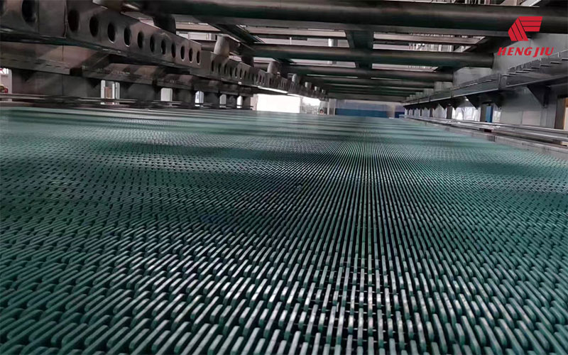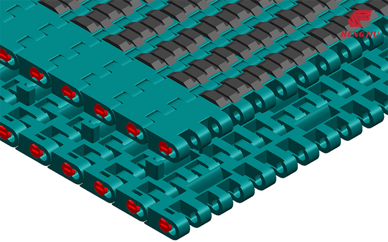 带有橡胶垫的爬坡/下坡链网能够光滑顺畅的运输包装物,这些橡胶垫通过注塑成型被粘结在特制模块上。根据包装方式和材料,橡胶垫模块化链网可以在角度最大至20度的场合使用。