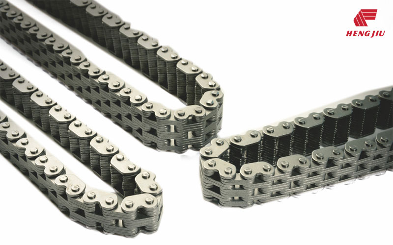 滚销式齿形链(双销轴齿形链)是在单轴齿形链基础上发展起来的。根据实验,滚销式齿形链的耐磨损性能是单轴齿形链的7倍,是同节距齿形链的15倍以上。越来越多应用领域比如汽车发动机、变速箱、分动箱、物料搬运等领域开始采用滚销式齿形链。我司拥有多项专利。